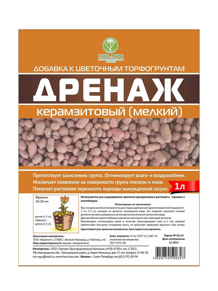 Керамзитовый дренаж мелкий 2л